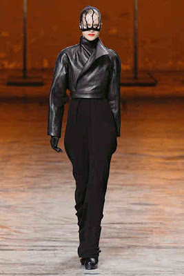 Models wore knitted face stockings at the Rick Owens show in Paris. Oh yes, that’s real fire.
