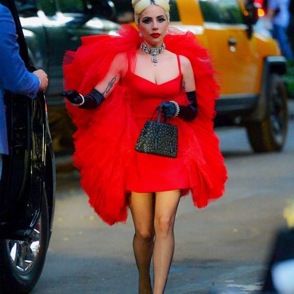 Gaga appeared on Thursday morning in white vintage dress with black clutch accessories, high heels, and retro sunglasses. She topped...