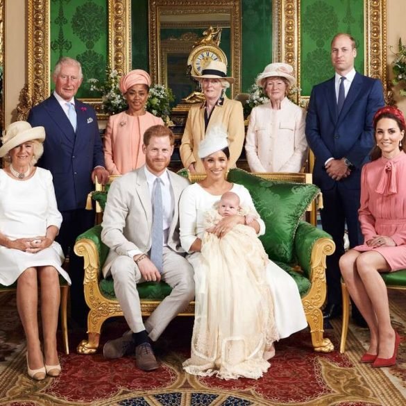 There’s Prince Harry and Meghan Markle with their 2-month-old bouncing baby boy, Archie Harrison Mountbatten-Windsor, who’s wearing the heirloom Honiton...