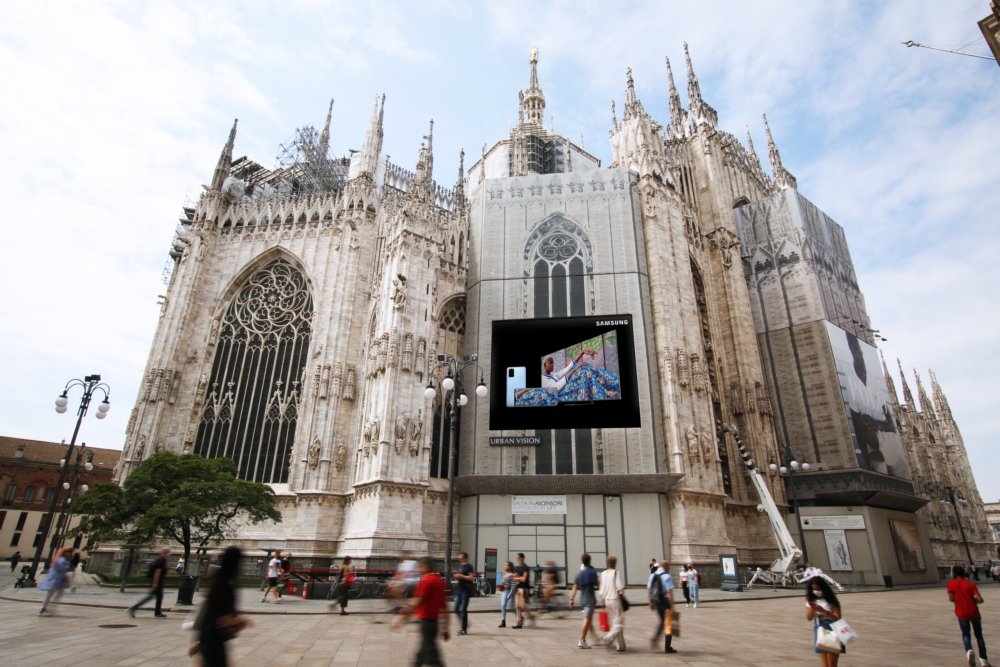 In Milan, big screens displaying the digital shows at locations throughout the city appeared to gain little notice on Day 1, with no sounds to indicate they were anything more than advertisements. And were they? More people passed the images flashed on the side of the Duomo and on a screen in the Navigli than stopped to watch.