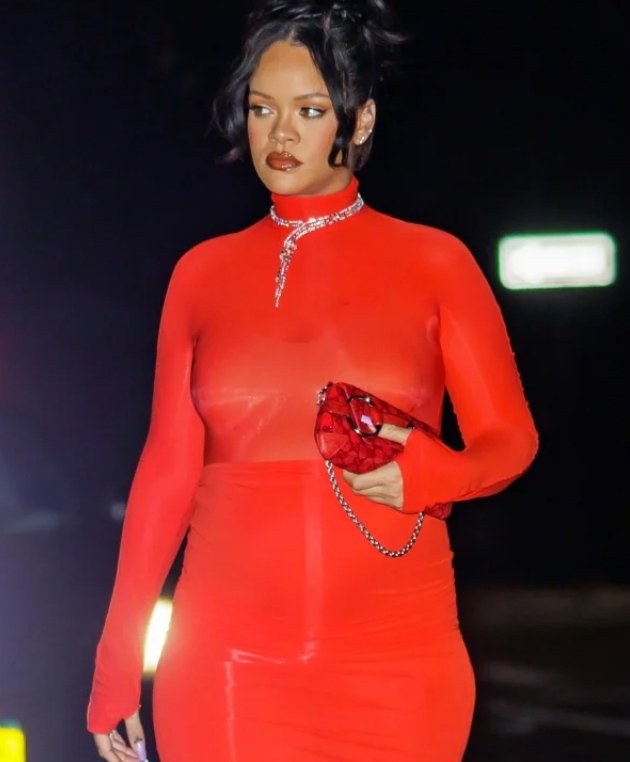 For the Sunday, April 23, outing, the 35-year-old “Umbrella” singer — who is expecting her second child with Rocky, 34 — donned a skintight red mini dress over fitted pants. The pairing, favorited by Ashley Tisdale and Miley cyrus in the early 2000s, is currently experiencing a shocking resurgence thanks to “Katie Holmes and now Rihanna.
