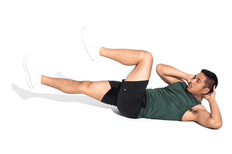 - Next, repeat by bringing your right knee to your right elbow.