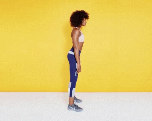 - She starts by sitting down and then getting up as if you were sitting on an imaginary chair.