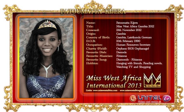 By OlucapriIn Fashionon March 23, 20131 min readTHE MISS WEST AFRICA FINALS MEET THE WEST AFRICAN BEAUTIES. EXACTLY ONE YEAR AGO ,I WAS AT THE CROWNING OF THE FIRST EVER MISS WEST AFRICA IN THE GAMBIA.